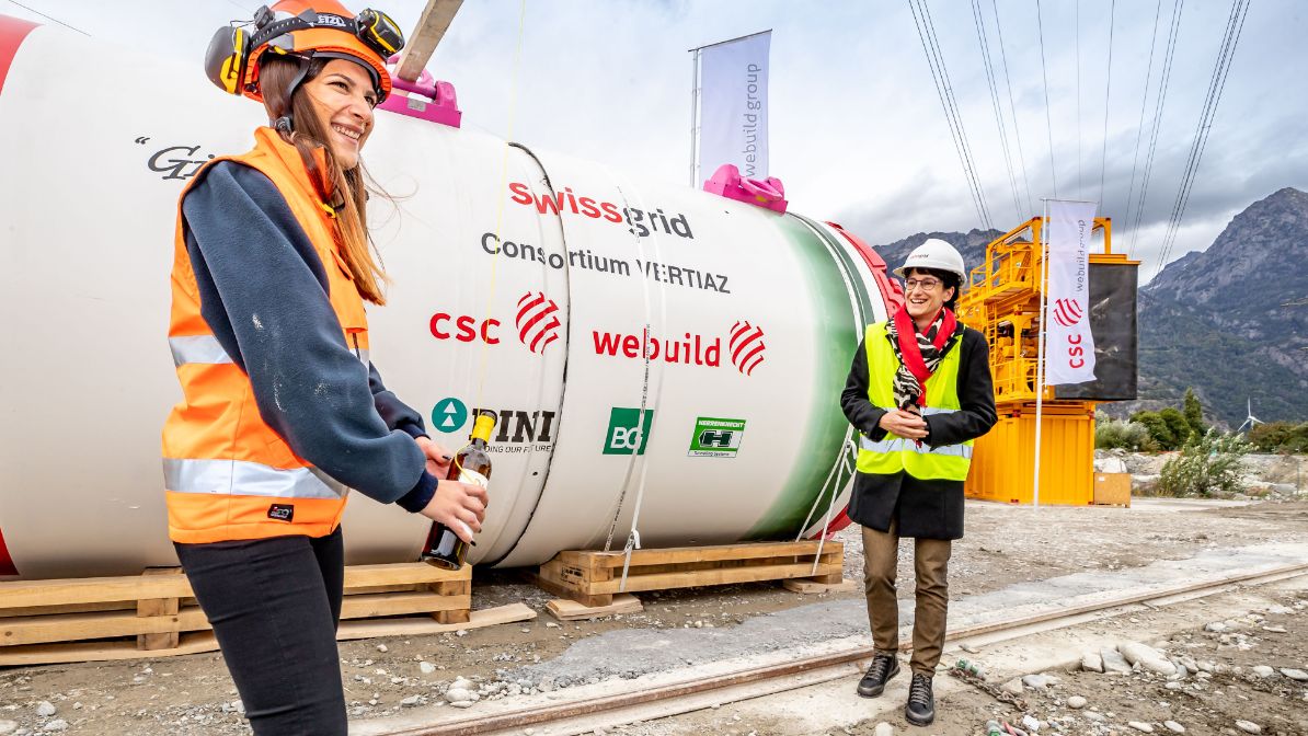 Swissgrid beginnt mit den Tunnelbauarbeiten für die unterirdische Kabelverbindung der Höchstspannungsleitung zwischen dem Unterwerk La Bâtiaz und Le Verney in Martigny.