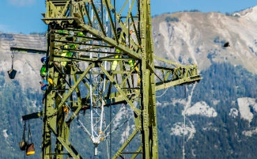 Le premier coup de pioche, qui a été donné le 23 août 2018, a marqué le début officiel des travaux du «Gäbihübel». La construction des stations aéro-souterraines, de la batterie de tubes et des raccordements des lignes aériennes est achevée depuis mi-2020. La nouvelle ligne à très haute tension est en service depuis. Le démantèlement de l’actuelle ligne aérienne sera achevé d’ici 2020.